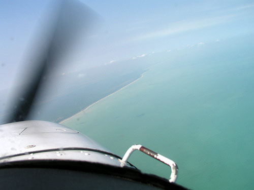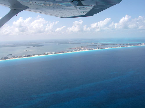 | Takhle vypadal Cancun, kdyz jsme se k němu po třech a půl hodině blížili. |