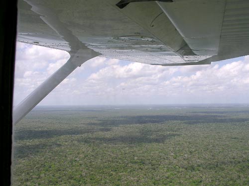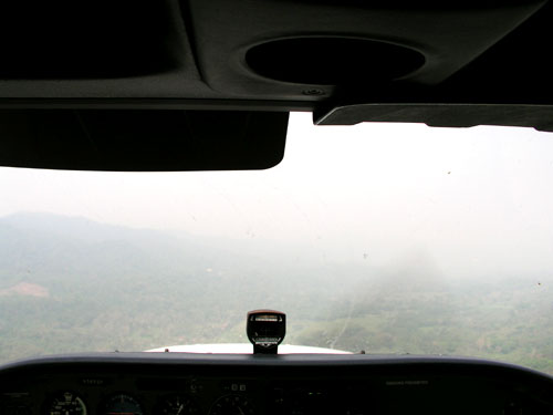 | Jak v Mexiku, tak v Thajsku byla občas nic-moc dohlednost. Pod námi v Mexiku jen samé keře. Buš. |